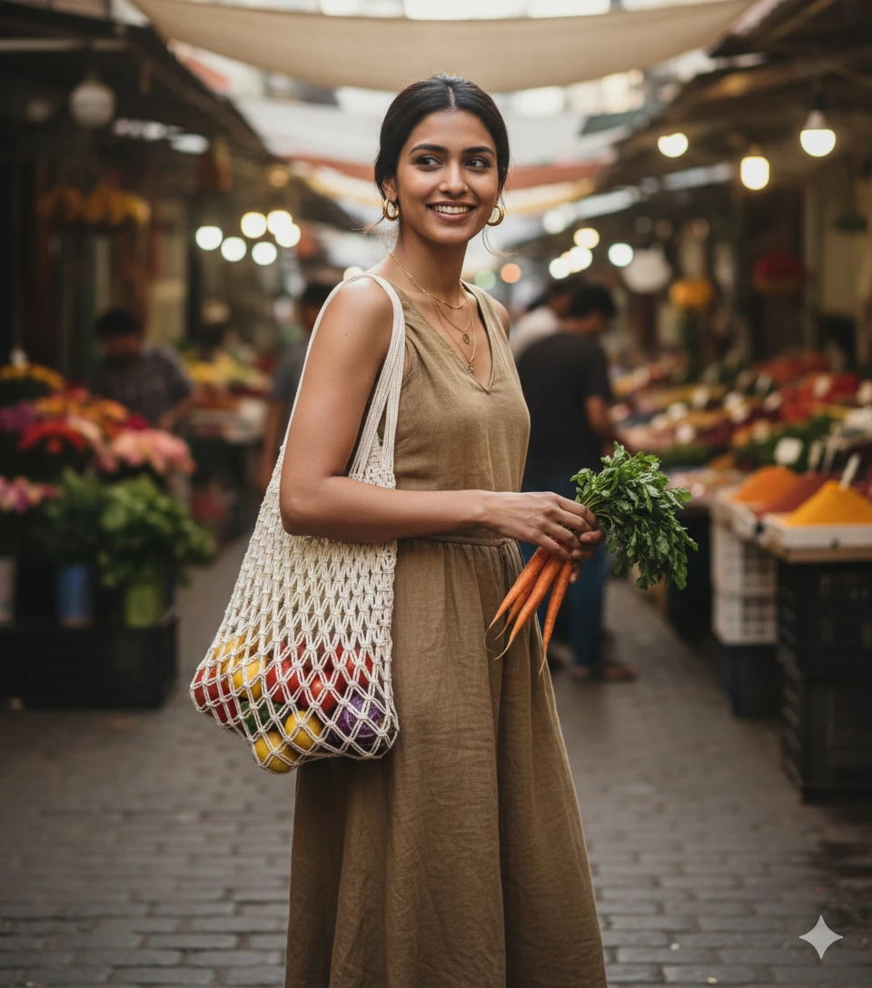 The Farmers Market Net Shopper is a practical yet stylish reusable bag designed for everyday shopping with a conscious, eco-friendly approach. Handcrafted using durable net-style weaving, this shopper is lightweight, flexible, and expands naturally to accommodate fresh produce, groceries, or daily essentials. Its breathable open-weave design makes it ideal for carrying fruits and vegetables while keeping them fresh.