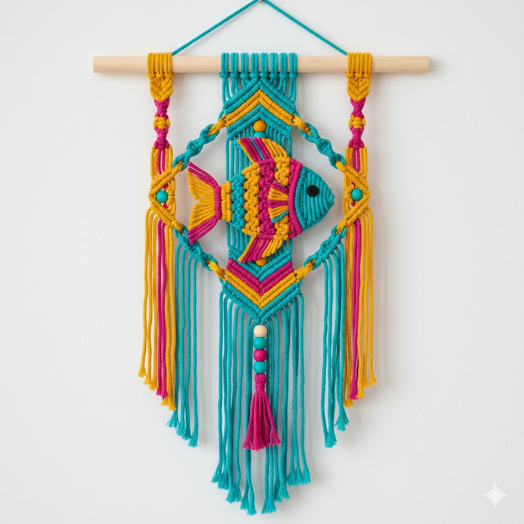 Designed to complement coastal, bohemian, and contemporary interiors, this wall hanging blends natural textures with an artistic fish motif. Its lightweight construction makes it easy to hang, while its elegant form adds character without overpowering the space. Ideal for living rooms, bedrooms, kids’ rooms, cafés, or creative corners, it instantly enhances the décor with a soothing and stylish touch.