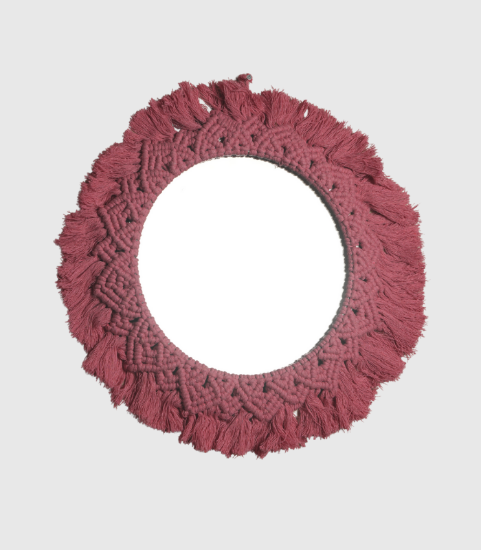 The Rose Quartz Macramé Sunburst Mirror is a handcrafted decorative piece that combines artisanal macramé craftsmanship with elegant home styling. Featuring a radiant sunburst design surrounding a round mirror, it creates a striking focal point in any room. The delicate macramé knots and soft rose quartz-inspired tones add texture, warmth, and a subtle bohemian charm to your interior décor.