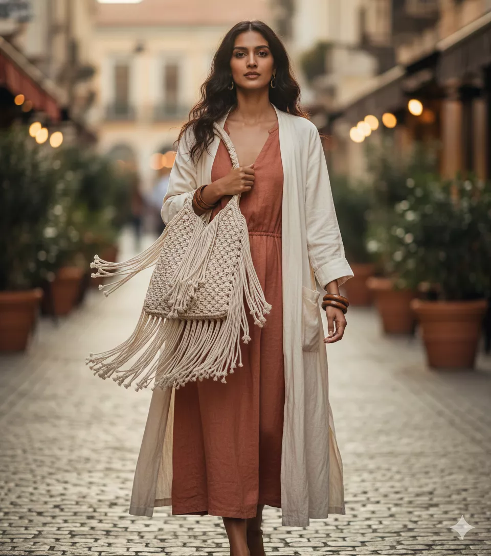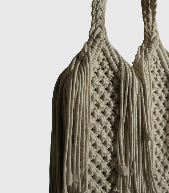 The Terra Trails Bag with Cascade Fringe is a handcrafted accessory that effortlessly blends bohemian flair with practical design. Featuring cascading fringe details and intricate macramé knotwork, this bag adds movement, texture, and artisanal charm to any outfit. Its earthy tones evoke a connection with nature while maintaining a stylish, contemporary appeal.