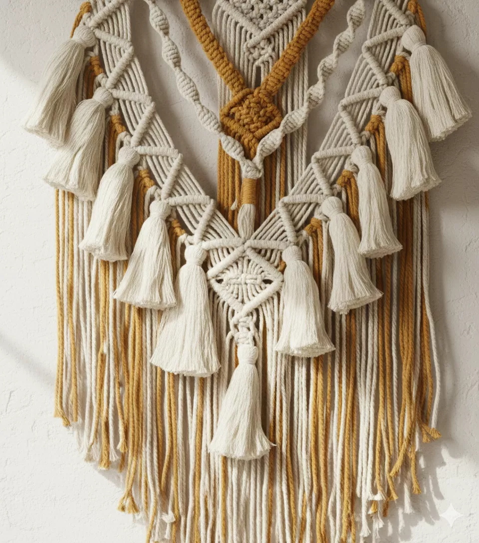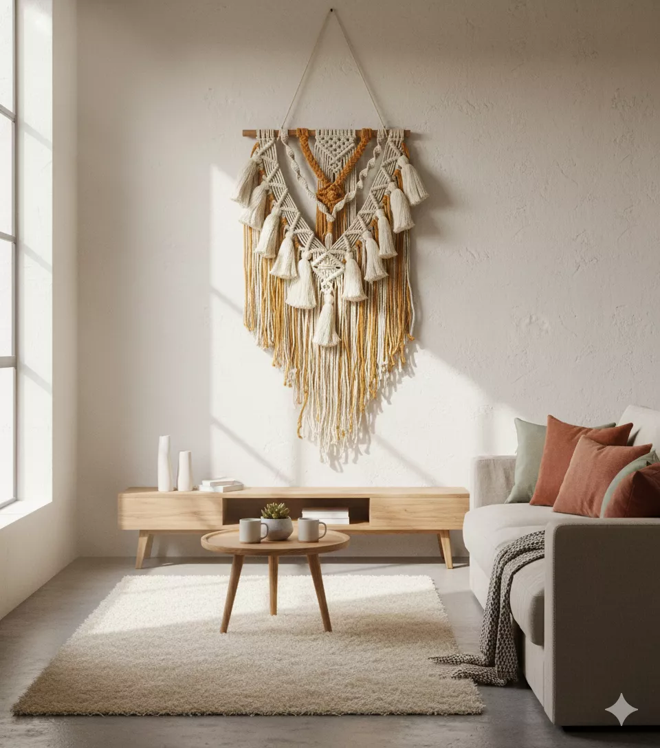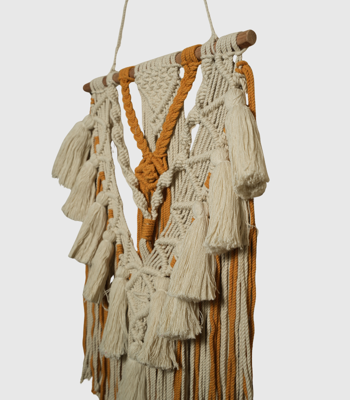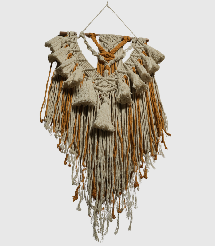 The Desert Bloom Layered Macramé Wall Hanging is a handcrafted statement décor piece inspired by the natural beauty of desert landscapes. Featuring beautifully layered macramé patterns, this wall hanging creates depth, texture, and visual warmth while bringing a refined bohemian charm to your space. Its earthy, desert-toned palette evokes calm and balance, making it a timeless addition to modern interiors.